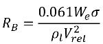 B 可以由气动阻力与表面张力之间的平衡确定。核工业中使用的关联式如下:
