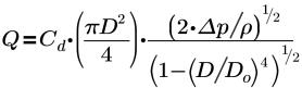 Do | 孔口周围上游壁的直径 (假定 >> D,如此便可忽略 (D/Do)4)。 |