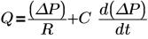 • “双元件”(2 Elements) - 根据由流阻器和容阻器组成的电路,确定选定“边界”(Boundary) 的流动-压力关系。双元件流阻器-容阻器的方程如下所示: