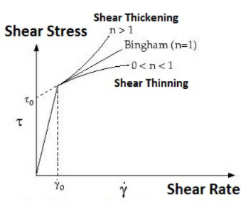 这些模型为具有非牛顿流体属性的各种流体类型提供了相应黏度。Herschel-Bulkley 模型和 Bingham 模型将剪应力与剪切速率联系到一起,如下所示: