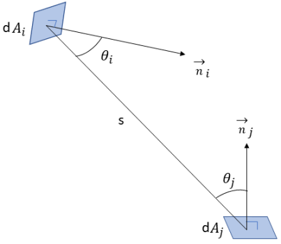请注意,仅当两个表面彼此可见,或角系数为非零时,才会发生表面对表面辐射。引入克罗内克符号