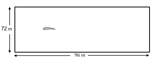 空气 密度 = 理想气体定律 黏度 = 3.54822 X 10 -5 kg/ ms | RAE 2822 翼型 AoA = 2.31 度 风洞高度 = 72 m 风洞长度 = 96 m | M = 0.729 边界处的压力 = 71154 Pa 边界处的温度 = 271 K |