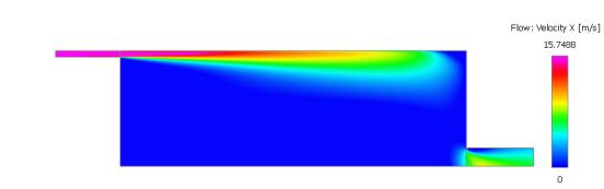 密度 = 1.1766 kg/m3 黏度 = 1.853e-5 Pa-s | L = 267.9 mm W = 89.3 mm 入口高度 = 5 mm 出口高度 = 14.3 mm | 入口速度 = 15.78 m/s 出口压力 = 大气压力 |