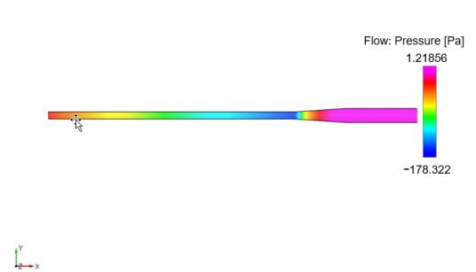 密度 = 1.15758 kg/m3 黏度 = 1.8406 x 10-5 Pa-s | 请参阅上方图像 | 入口速度 = 18.06 m/s 出口压力 = 0 Pa |