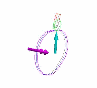 下图显示了凸轮从动机构装配动态分析的回放。绿色箭头表示针对分析所创建测量的模和方向。双头洋红色箭头表示伺服电动机上的净载荷,而青色箭头则表示施加在凸轮上的法向力。