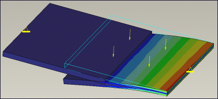以下模型包含两个板。它们的相对端夹在一起。右侧板上施加的载荷将板向上拉。