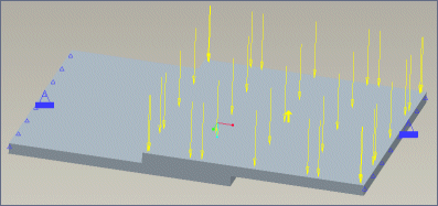 以下模型包含两个板。它们的相对端夹在一起。右侧板上施加的载荷将板向下推。