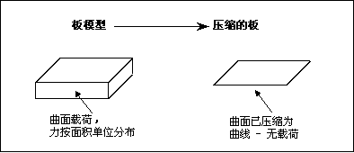 对于中间曲面将其压缩为另一种类型的几何图元,不能在该图元上通过分布于单位面积上的力施加力载荷。例如,如果决定将如下矩形板以壳形式建模,