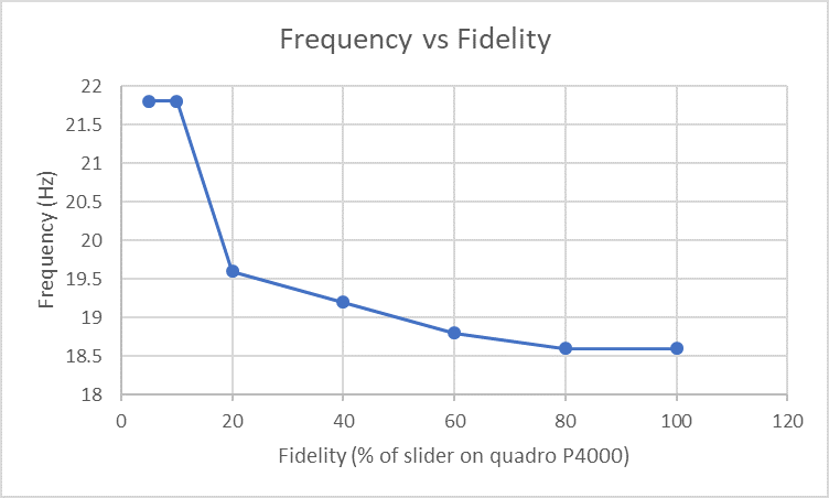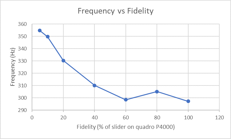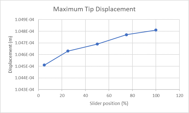 保真度滑块位置 (百分比) | 位移 - 米 Ansys Discovery Live | 位移 - 米 Creo Simulation Live | 差异百分比 |