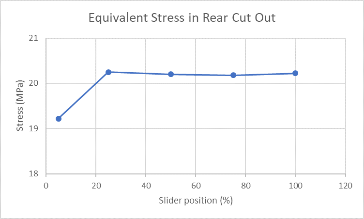 保真度滑块位置 (百分比) | 应力 MPa Ansys Discovery Live | 应力 MPa Creo Simulation Live | 差异百分比 |