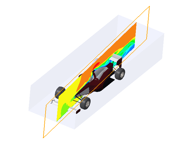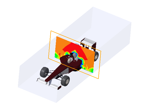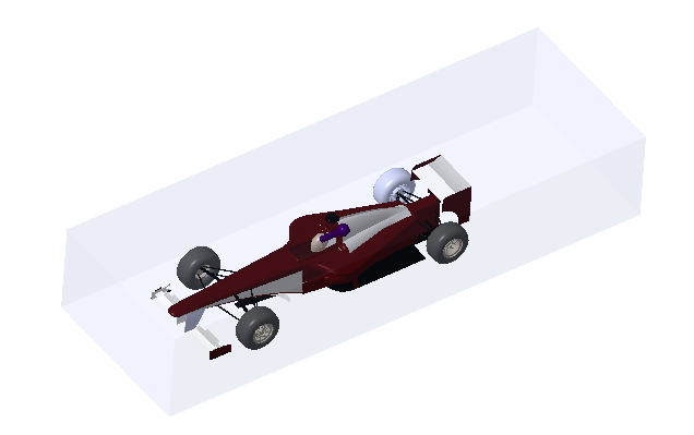 在对外部流体流动进行仿真时,模型位于封闭体的内部。流体流经封闭体以及模型周围。要研究此类流动,请使用外部流体流动仿真研究。请参见下面的赛车示例。
