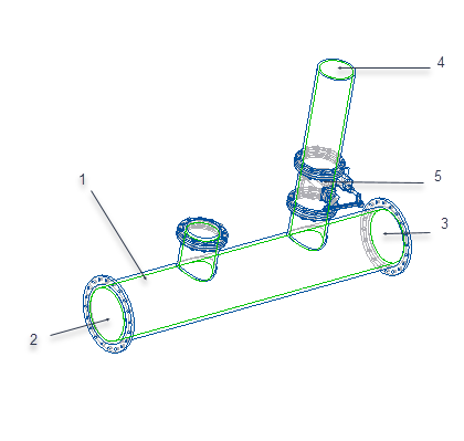 ![]() 1. 流体域(绿色轮廓表示域的范围) 2. 入口 1 3. 入口 2 4. 出口 5. 流体域包围的阀 |