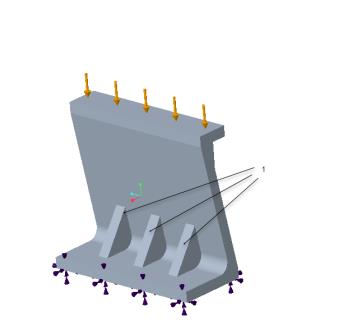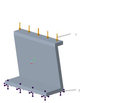 ![]() 1. 100 磅力应用于上部曲面 2. 固定约束应用于下部曲面。 |