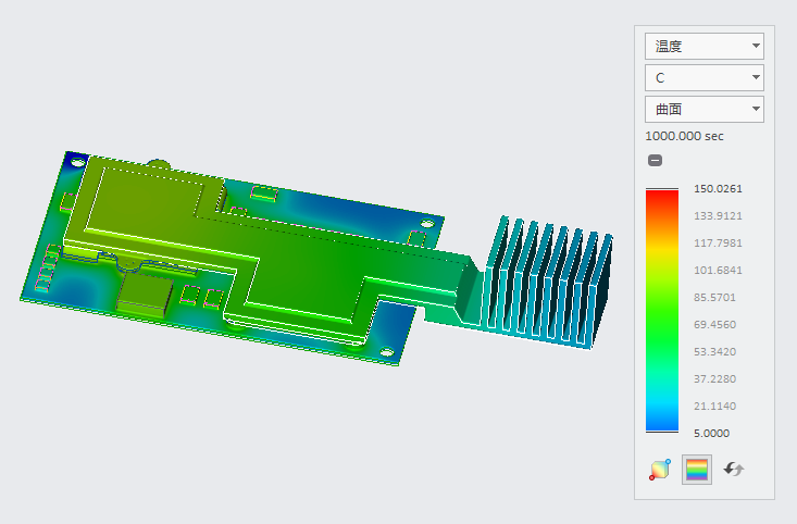“仿真”(Simulate) 来启动瞬态热仿真。仿真运行时,会显示更改的条纹图。如果要暂停仿真,请单击