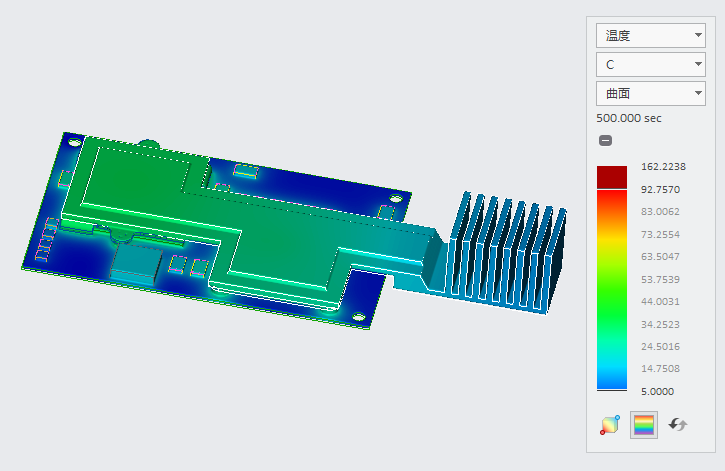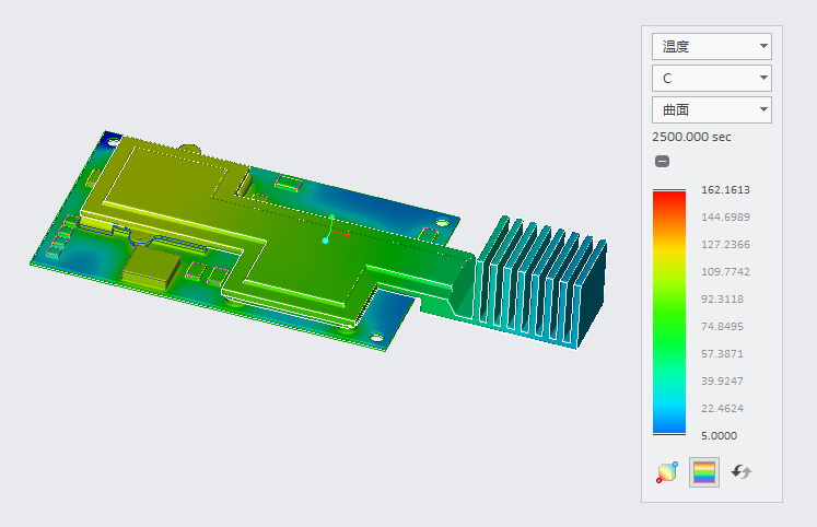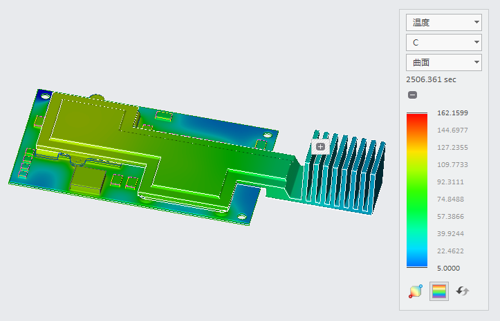 “仿真”(Simulate) 以使用新设计运行热仿真。结果现在接近 162 摄氏度。
