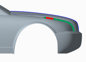 在下图中,已选中“仅相交”(Intersection only) 复选框,并已针对 G0、G1、G2 和 G3 连接对两个曲面间的连接进行了分析。不满足选定分析类型要求的连接区域以红色显示。