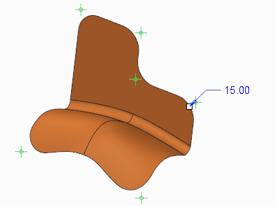 使用“顶点倒圆角”工具以对曲面或面组中的顶点倒圆角。可选择几个顶点并将相同半径应用到所有顶点,但是所有选定的顶点必须位于同一面组。