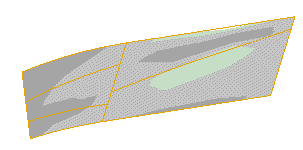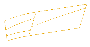 本示例显示如何在中间曲线的两侧创建两个彼此相切的边界混合。为使两个边界混合之间相切,沿中间曲线创建一个“带”曲面。为“带”曲面定义参考曲线时,在中间曲线的两侧都选择三条内部曲线。