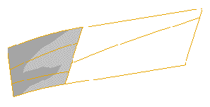 在中间曲线的左侧创建边界混合。定义边界条件时,通过参考“带”曲面在中间曲线上指定一个相切条件。由于“带”与右侧的内部曲线相切,所以现在左侧的边界混合也与右侧的曲线相切。