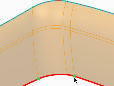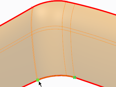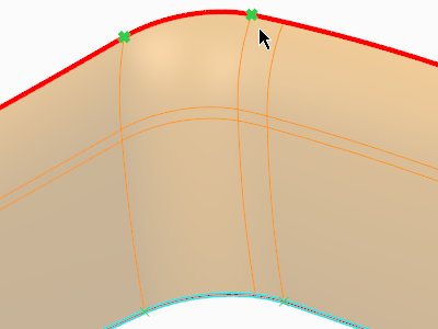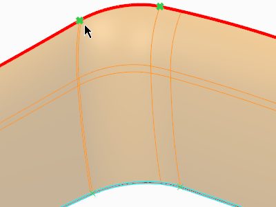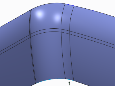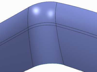 下图显示了添加控制点后的混合曲面。混合曲面特征不再包含一个小曲面。