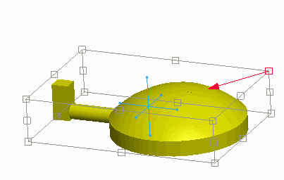 下图显示了扭曲模型和用于三维缩放的选取框。