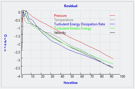 | 稳态仿真的默认收敛条件为 0.001。当所有变量的残差减少 3 阶,或达到最大迭代数时,会进行下一个时间步长的计算。 |