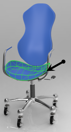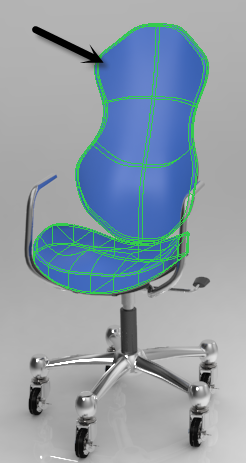 在“外观库”(Appearance gallery) 中,单击“库”(Library) 下方的 leather-black。“选择”(Select) 对话框随即打开。 | 单击座椅将其选定。 | 按住 CTRL 键并单击椅背,从而可将座椅和椅背同时选中 | 单击“确定”(OK)。座椅和椅背将变为皮革黑色,而画笔会变回指针。 |