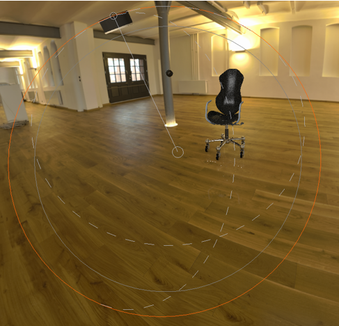 7. 双击 indoor_room_scene。椅子所在的场景发生更改。通过缩小模型进行场景实验。随着椅子越来越小,您可以看到更多场景。