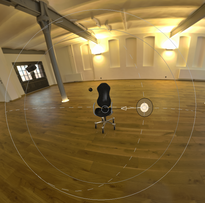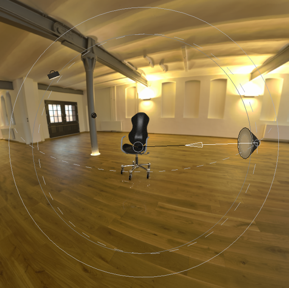 • 在“锁定到”(Lock To) 框中,选择“模型”(Model)。此操作可将光源锁定至模型 • 将“角度”(Angle) 滑块移动至 180 以扩大角度,降低光源的集中性。 | |