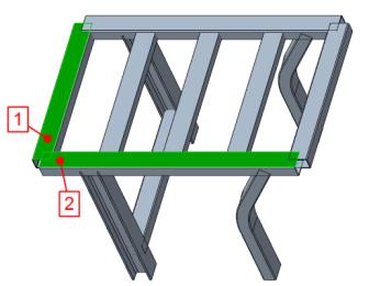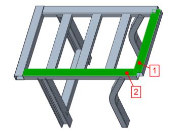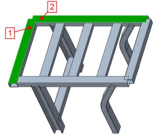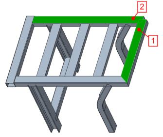 5. 参考下图中的注解 2,在模型上选择突出显示的位置附近的第二个轮廓端点。显示的拐角接头只是一个预览,这使您能够在确认最终创建之前能够更改选项。