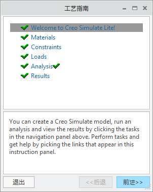 2. 单击“否”(No) 在不转换模型的情况下打开 Creo Simulate Lite。“工艺指南”(Process Guide) 对话框随即打开。
