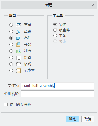 b. 在“文件名”(File name) 框中,键入 crankshaft_assembly。