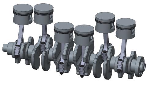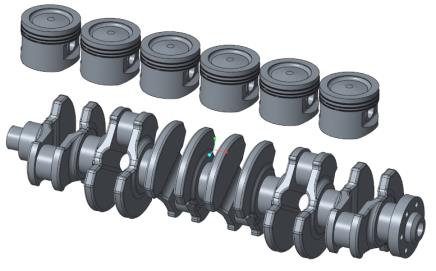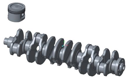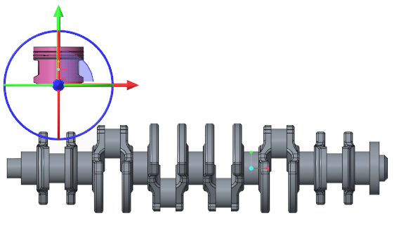 曲轴需要两个装配约束。第一个约束将装配轴与曲轴轴对齐。第二个约束将曲轴沿轴放置。