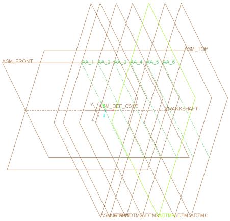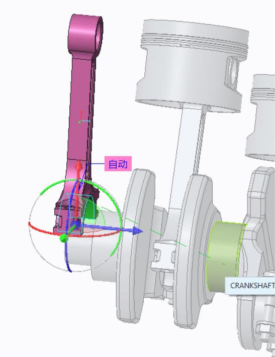 b. 在“模型树”中,选择基准轴 CRANKSHAFT。