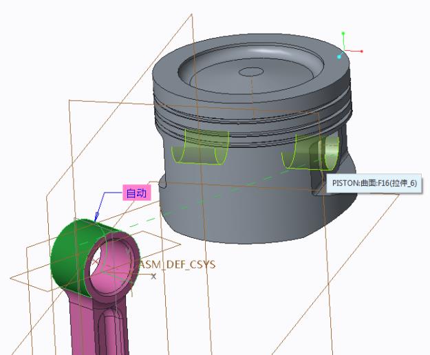 c. 在“模型树”中,展开 PISTON_ASSEMBLY.ASM 并选择基准轴 PISTON。