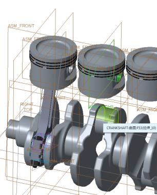 c. 在“模型树”中,展开 CRANKSHAFT.PRT 并选择基准轴 SHAFT。
