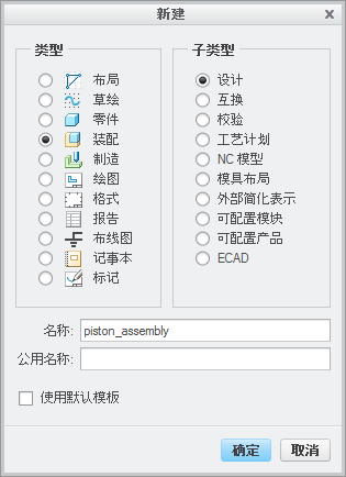 b. 在“名称”(Name) 框中键入 piston_assembly。