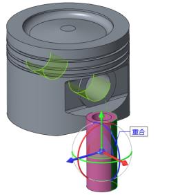 活塞销需要两个装配约束。第一个约束是令销和孔对齐的重合约束。第二个约束是在孔中定位销的重合约束。