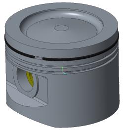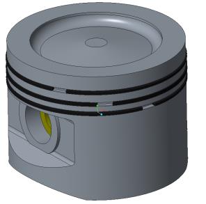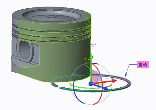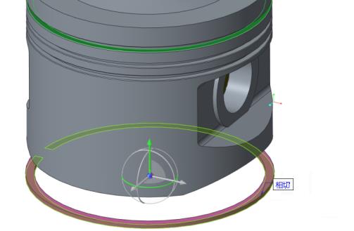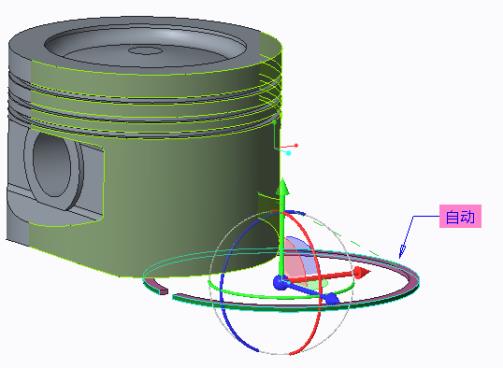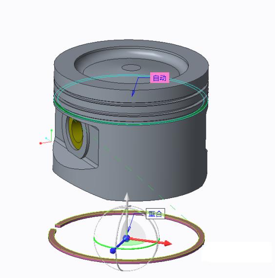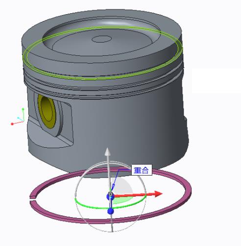 活塞环需要三个装配约束。第一个约束是令环和圆柱同轴对齐的重合约束。第二个约束是将环放置在槽曲面上的重合约束。第三个约束是旋转环来确保环间隙不对齐的约束。