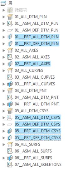 a. 按住 CTRL 键,然后在“模型树”中选择基准平面 ASM_RIGHT 和 ASM_FRONT。
