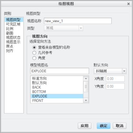 a. 在“视图方向”(View orientation) 下的“模型视图名”(Model view names) 列表框中,选择“分解”(EXPLODE)。