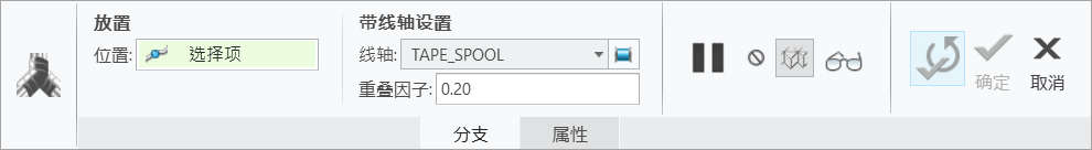 用户界面位置:单击“缆”(Cabling) > “修饰”(Cosmetics) > “分支带”(Branch Tape)。