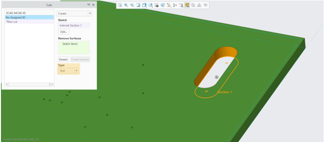 • 槽将作为单独的切口特征导入,并带有将其标识为 ECAD 槽的属性。