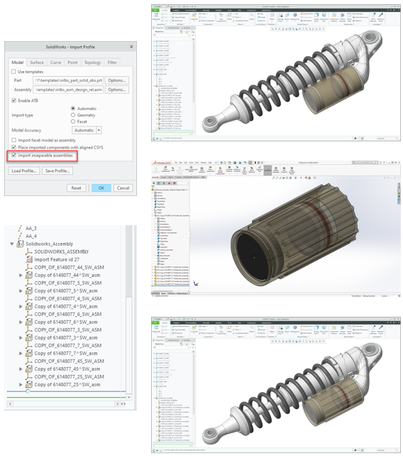 • 现在,标准导入配置文件对话框中提供了用于导入不可分离装配的新选项。