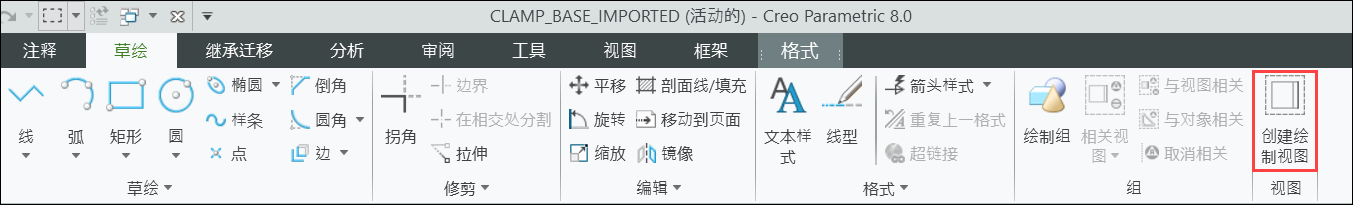• 单击“草绘”(Sketch) > “创建绘制视图”(Create Draft View)。