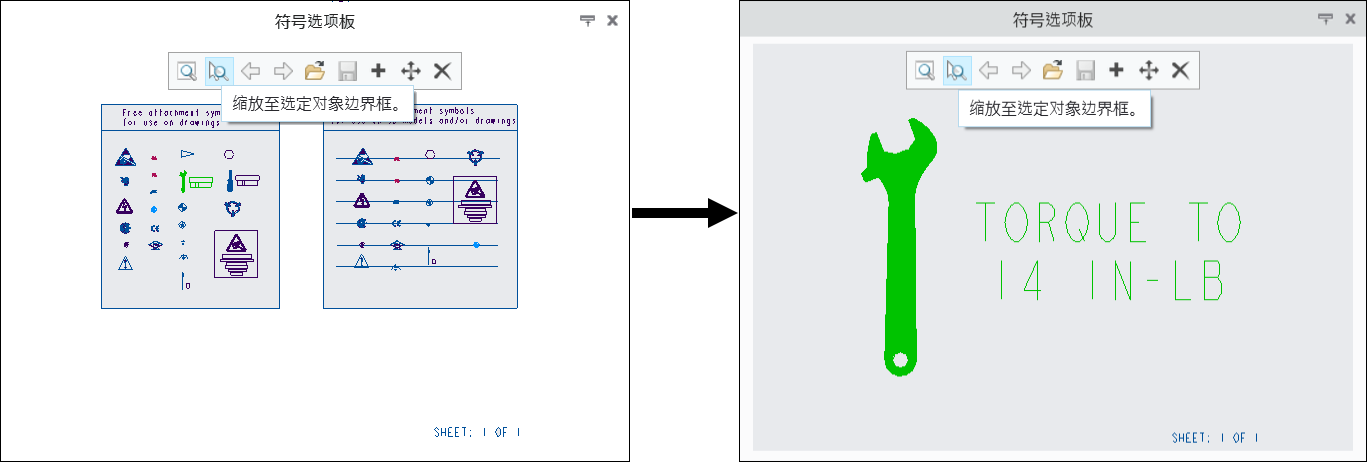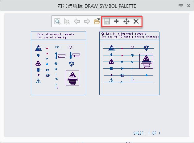 新增的图形中工具栏可轻松导航和编辑符号选项板。