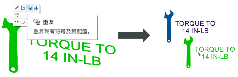 快捷菜单上新增的上下文“重复”(Repeat) 命令可用于复制现有符号、复制其自定义属性以及将其放置到新位置。