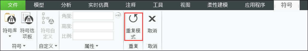| 也可通过使用功能区上的 “重复模式”(Repeat Mode) 命令来放置多个符号实例。其默认状态可通过使用 symbol_repeat_modeyes/ no* 配置选项进行设置。 |