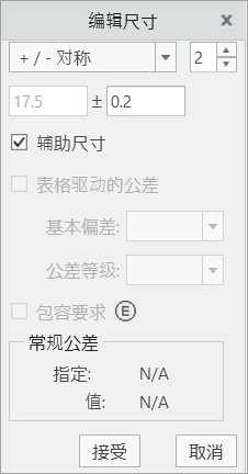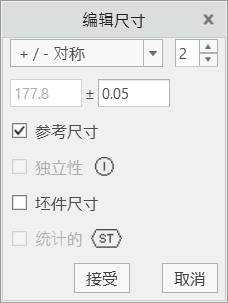 用户界面位置:定义公差特征/阵列时,在“编辑尺寸”(Edit Dimension) 对话框中选择“参考尺寸”(Reference Dimension) 或“辅助尺寸”(Auxiliary Dimension) 复选框。