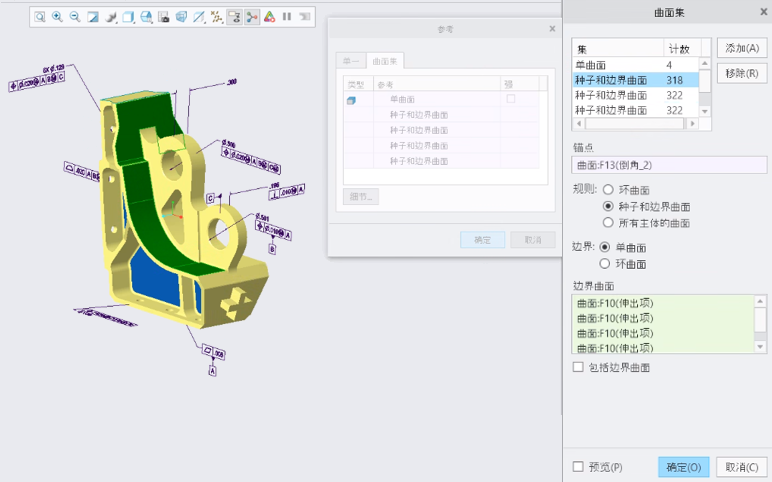 “参考”(References) 对话框中新的“曲面集”(Surface Sets) 选项卡能够让您轻松收集所需的语义参考。